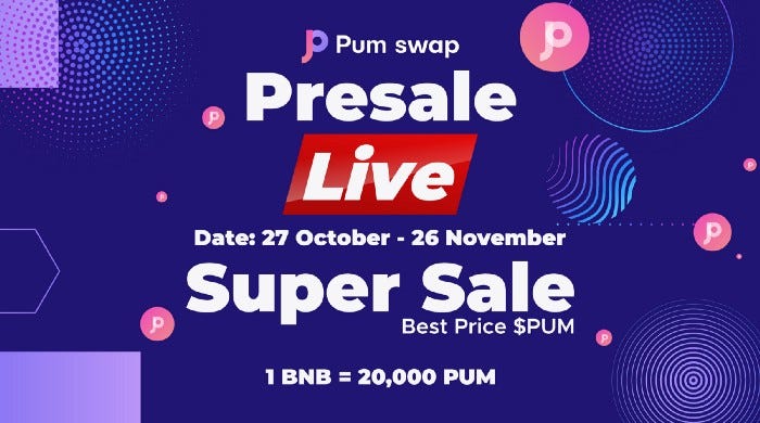 - Mainnet Pre-Sale Token price is 1 PUM = 0.00005 BNB